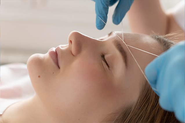 Experience precise and flawless eyebrow shaping with Aanoj's Unisex Salon & Academy's threading service. Our skilled technicians use the ancient art of threading to sculpt your brows with meticulous precision, resulting in clean lines and defined arches. Gentle on the skin and suitable for all skin types, threading offers long-lasting results without the risk of irritation or redness. Trust Aanoj's for an unparalleled threading experience that leaves your brows beautifully groomed and perfectly shaped